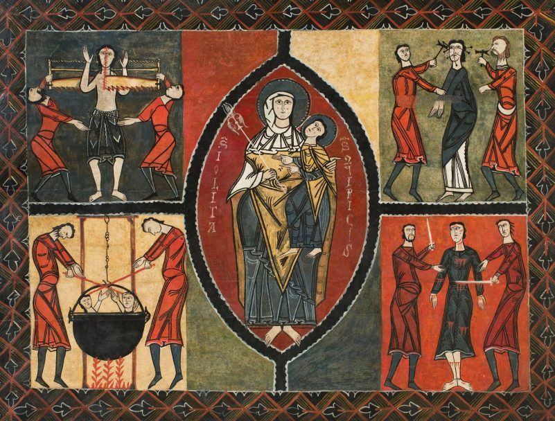 Además de la pintura mural al fresco, existían otras tipologías de pintura románica. Entre ellas, destacan las miniaturas, que se incluían para ilustrar los textos de las Biblias, o la pintura sobre tabla, para decorar los altares. Un ejemplo de ello es el frontal del altar de Durro que, aunque actualmente reside en el Museo de Arte de Cataluña, originalmente procede de la ermita de Sant Quirc de Durro, en Lérida. Este retablo representa las escenas del martirio que sufrieron Santa Julita y San Quirce. Madre e hijo sufrieron represalias en tiempos del emperador romano Diocleciano como consecuencia de no renunciar a la fe cristiana.