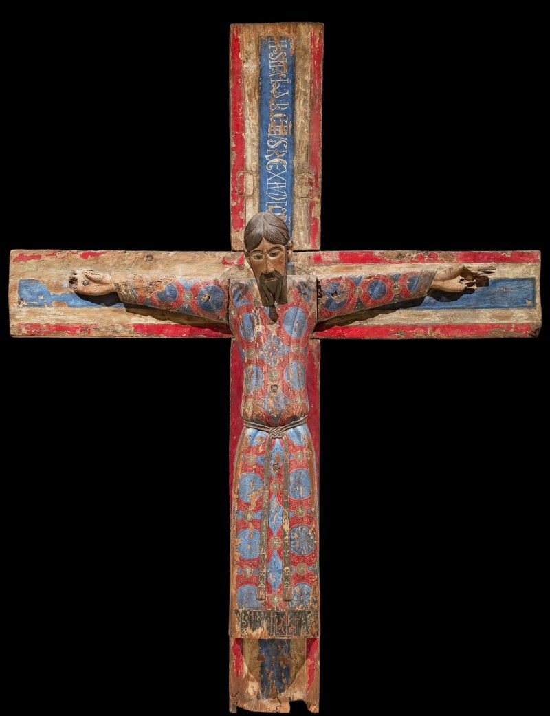 No obstante, también se pueden encontrar esculturas exentas, que no dependen de la arquitectura de los edificios. El ejemplo escogido es Majestad Batlló, la representación de Cristo crucificado en una composición frontal y geométrica. Tallado en madera policromada, se caracteriza por una expresividad solemne. Está vestido con una túnica de colores llamativos y de apariencia lujosa, recordando al estilo bizantino o hispanomusulmán. Actualmente se encuentra expuesto en el Museo Nacional de Arte de Cataluña.