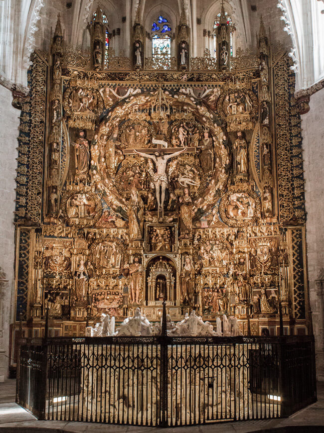 En el monasterio de la Cartuja de Miraflores (Burgos), se encuentra el Retablo Mayor, de Gil Siloé y Diego de la Cruz, cuyo tema es la exaltación del sacramento de la Eucaristía. Está esculpido en madera policromada y dorada.