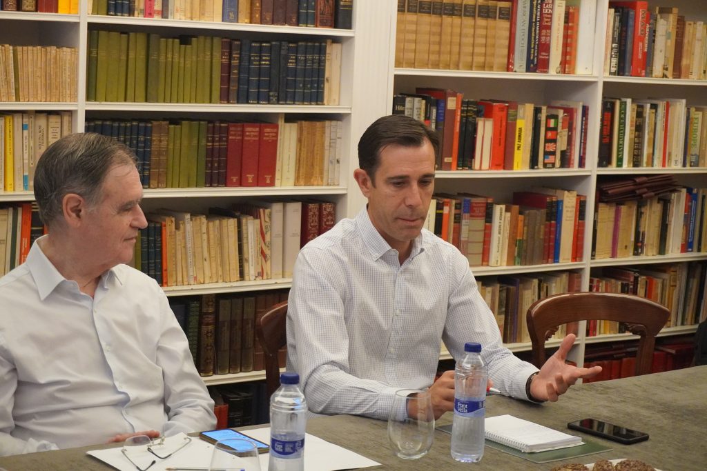 Pedro Barahona, durante la reunión, sentado al lado de Aureo Ruiz de Villa.