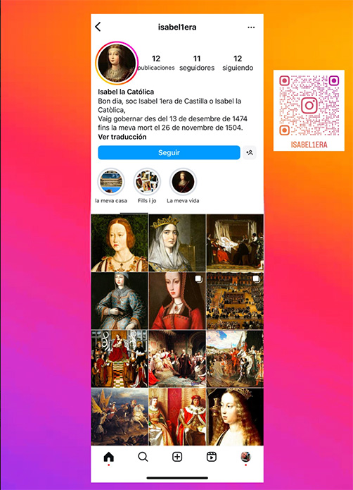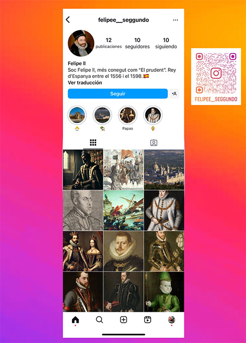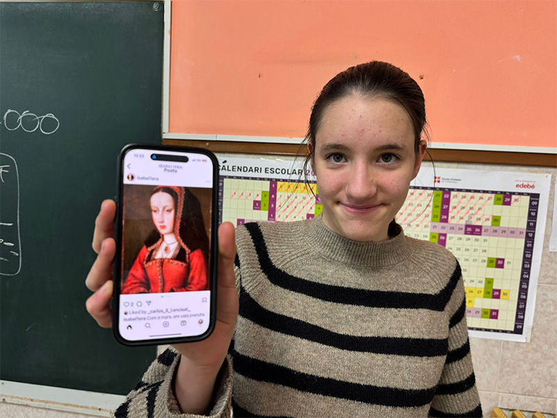 La propuesta, desarrollada en una clase de 4º de ESO del colegio Sant Josep de Barcelona, parte de una premisa tan simple como potente: crear perfiles de Instagram de los reyes y reinas más relevantes de la historia de España, como si ellos mismos tuvieran acceso a esta red social. Los alumnos, organizados en grupos, deben investigar en profundidad la vida y el contexto histórico del monarca asignado y crear contenido como si fueran ellos mismos: fotos, stories, descripciones, hashtags, interacciones con otros personajes históricos y hasta memes relacionados con su reinado.