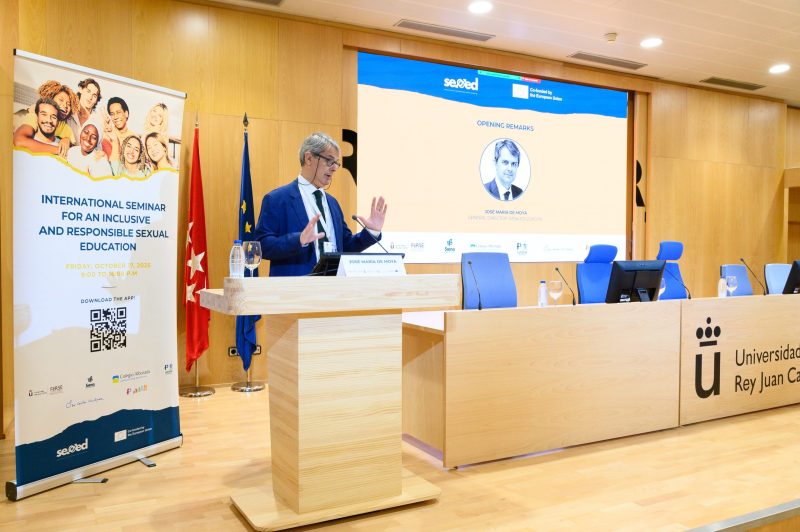 La jornada, que acogió el Salón de Actos del Campus de Fuenlabrada de la Universidad Rey Juan Carlos, reunió a psicólogos especializados en sexualidad y profesores con el objetivo de divulgar y compartir los resultados y herramientas desarrollados con el Proyecto SEED, así como propuestas para aplicar la educación sexual en diferentes etapas y contextos educativos. Esta iniciativa europea, cofinanciada por la Comisión Europea, promueve una educación sexual integral ética e inclusiva desde la estrecha cooperación entre familias y escuelas.