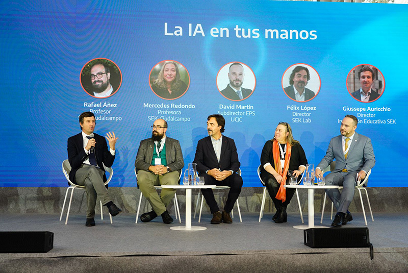 El Simposio también incluyo otros debates y mesas redondas con docentes, profesionales y estudiantes de los Colegios Internacionales SEK y la Universidad Camilo José Cela, encabezados por Jaime Olmedo, rector de la UCJC, e Iván Martínez, director general de SEK International Schools, además de las conferencias de Howard Gardner, profesor de la Universidad de Harvard, y Stephen Heppell, experto internacional en educación y director de la Cátedra Felipe Segovia para la Innovación en el Aprendizaje de la UCJC, que desgranó cómo las instituciones educativas del mundo se están adaptando y aplican nuevas tecnologías como la IA en sus metodologías educativas.