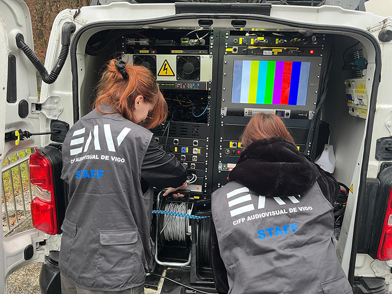 Pero la sinergia también se traslada al propio CIFP Audiovisual de Vigo, ya que todos los módulos pueden colaborar en la iniciativa. “Además de participar el alumnado de los ciclos superiores de Sonido, Realización, Producción e Iluminación, también los alumnos de Animación 3D realizaron una presentación digital de la jornada que hoy grabamos en Poio y también diseñaron la imagen corporativa”.