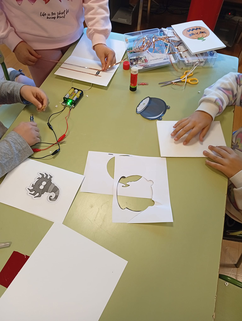 Especialmente interesante fue la actividad realizada durante el Samaín (el Halloween gallego). “Este año el colegio está trabajando de forma transversal el tema del arte, así que decidimos, a través del polo creativo, aplicar la tecnología a una temática tan particular como es la del 31 de octubre. Así, los alumnos prepararon un túnel del terror, en el cual, al paso de cada persona, se iban encendiendo los cuadros que se encontraban colgados en el túnel, todos ellos con cierto ‘regusto de terror’, como El Grito de Munch o Saturno devorando a su hijo de Goya”.