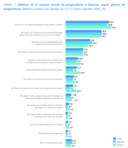 La investigación destaca que el 82,6% de los padres ha realizado compras online a petición explícita de sus hijos, principalmente de ropa y calzado (53,5%); videojuegos y productos digitales (25,1%); y electrónica (21,2%). Las principales razones citadas fueron la responsabilidad parental (42,7%), que los hijos e hijas carecen de métodos de pago válidos (35,2%) y que los hijos e hijas son demasiado jóvenes para comprar de forma independiente (23,9%).