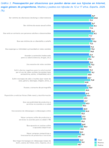 La seguridad digital emerge como una prioridad máxima para las madres y padres españoles, con preocupaciones significativas sobre: ciberacoso (76,9%); acoso sexual online (76,7%); contacto con adultos desconocidos (76,2%); fraude y estafas online (62,3%); y robo de datos bancarios y personales (57,1%).