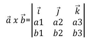 A diferencia del escalar, el producto vectorial entre dos vectores genera otro vector. Pero no cualquier vector: uno perpendicular a los dos vectores originales. Esto solo se define en tres dimensiones y se calcula como: