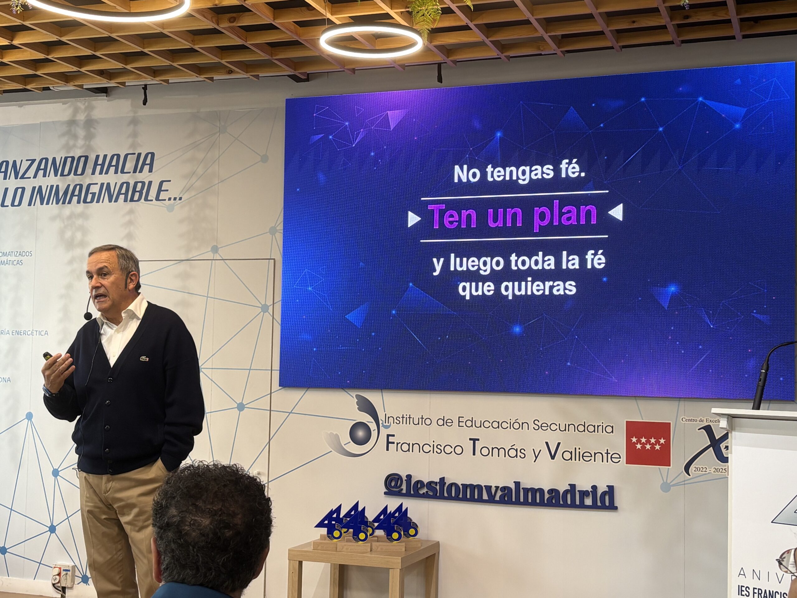Después de la conferencia, Tomás Alonso ha ofrecido un recorrido por los últimos diez años del centro, un repaso en el que ha subrayado proyectos, mejoras y logros compartidos por toda la comunidad educativa. Su intervención ha mezclado la emoción del adiós con el orgullo por una etapa en la que el instituto ha reforzado su identidad como espacio de innovación, compromiso y vínculo con la empresa.