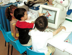 Este proceso se ha realizado en todas las etapas. Así, en Infantil, contaron con el Rincón del ordenador, en el que los alumnos trabajan con materiales TIC elaborados por profesoras del centro. También trabajaron con paginas web de diseño propio.