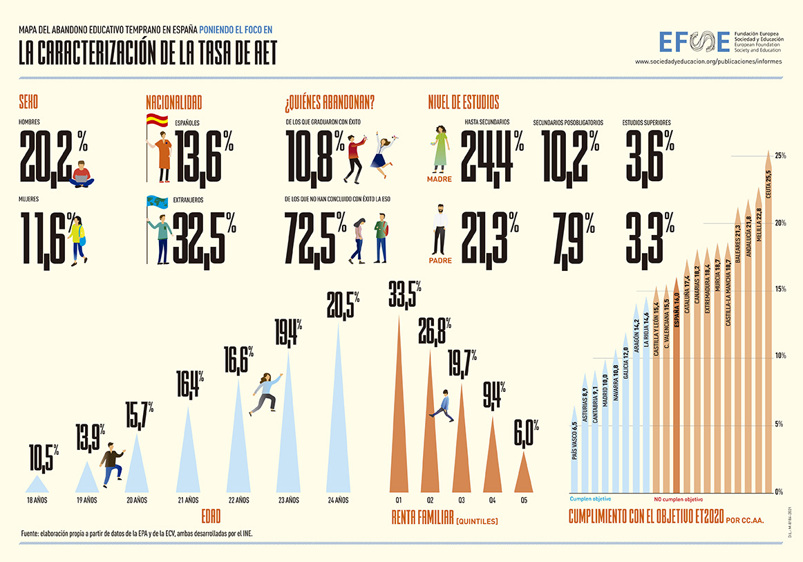 El abandono escolar es un rasgo masculino, los extranjeros residentes en nuestro país duplican la tasa de los nacionales y la formación de los padres y su capacidad económica inciden directamente en la probabilidad de abandonar de forma temprana la Educación. Este es el mapa del abandono en nuestro país.