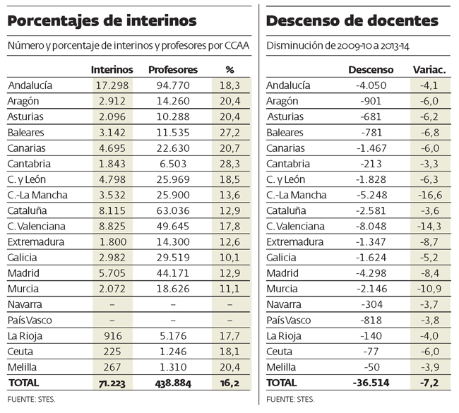 La tasa de docentes interinos sube en tres años hasta el 16,2%