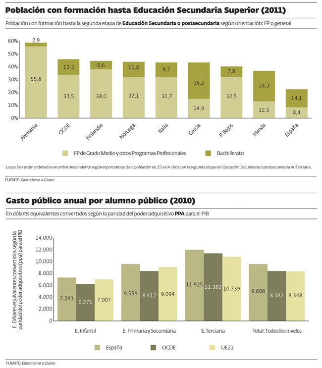 Solo un 8,4% de adultos tiene FP de Grado Medio frente al 33,5 de la OCDE