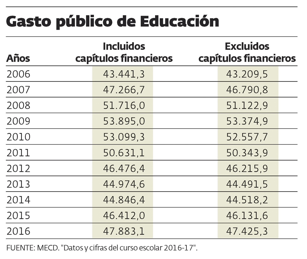 Los presupuestos educativos recobran un tercio de los 8.900 millones perdidos