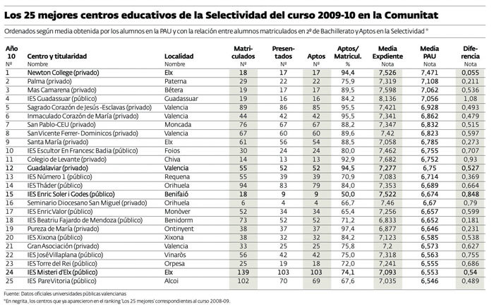 El Colegio “Newton College” de Elche, mejor centro en la Selectividad 2010