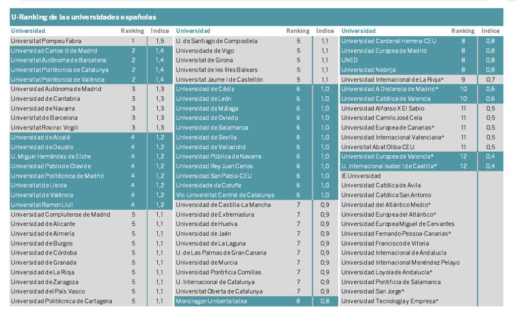 Las diez mejores universidades españolas en investigación e innovación son públicas