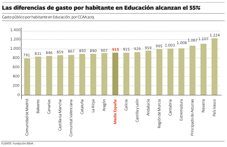 Las diferencias en el gasto educativo entre comunidades llegan al 55%