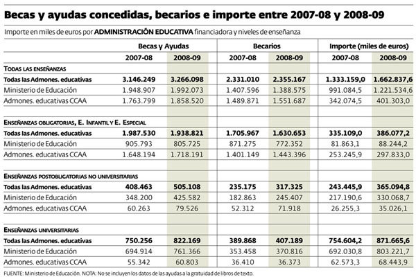 El Gobierno sube las becas y dota con 150 euros más a los mejores