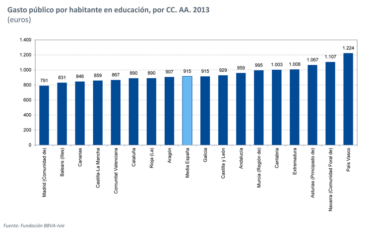 País Vasco y Navarra, las CCAA que más invierten en Educación; Madrid y Cataluña, las que menos
