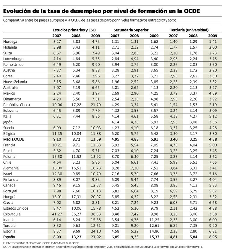 OCDE dice que la pérdida de empleo es mayor entre los menos cualificados...