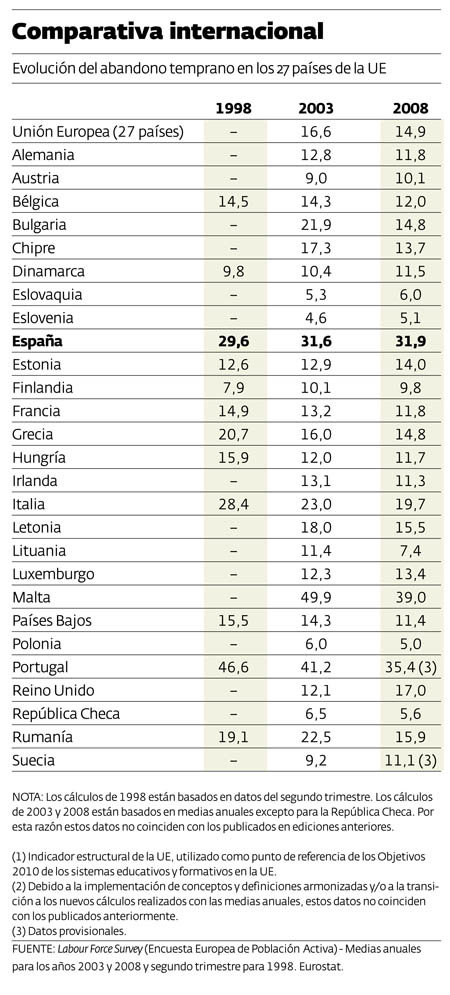 España, a 20 puntos de cumplir su objetivo de abandono temprano