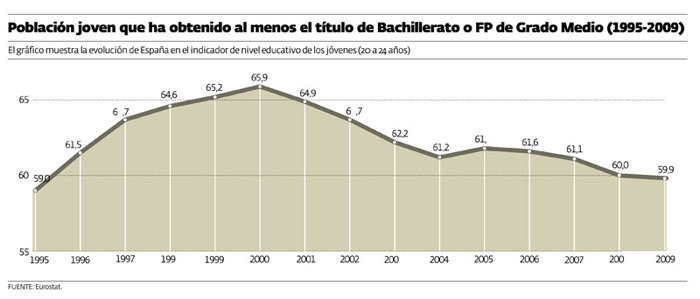 El nivel de formación de los jóvenes baja seis puntos desde 2000, hasta el 59,9%