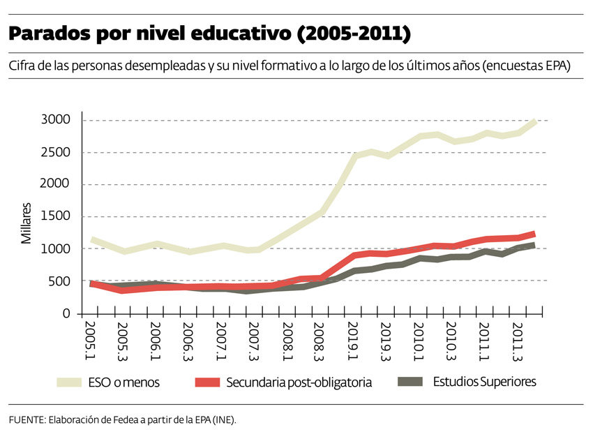 El 56% de los parados tiene un nivel bajo de estudios, y la mitad de ellos ni la ESO